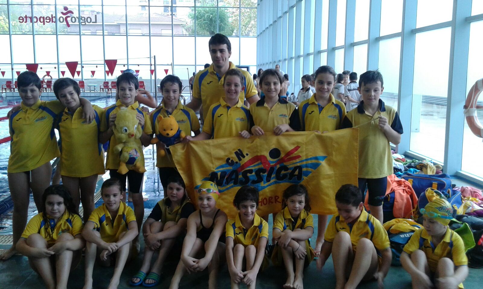 El pasado sábado 21 de noviembre, tuvo lugar la primera jornada de competiciones de esta temporada para los nadadores riojanos de las categorías Prebejamín y Benjamín, en las instalaciones del CDM. Lobete de Logroño. Una vez más y siguiendo la tónica de sus compañeros de categorías superiores, los nadadores del CN Nassica obtuvieron muy buenos resultados. Los 17 nadadores que formaban la representación del CN Nassica, hicieron gala de su calidad y del trabajo y esfuerzo que han venido realizando en los entrenamientos desde que comenzase la temporada, para mostrarlo en su primera competición de esta temporada, y a buen recaudo, en las futuras competiciones venideras. Se nadaron las pruebas de 100 estilos en categoría Prebenjamín y las pruebas de 400 libres, 200 estilos, 100 espalda y 50 braza en la categoría Benjamín. De entre todos los buenos resultados obtenidos por los nadadores calagurritanos en esta jornada de competición, cabría destacar la extraordinaria marca realizada por IVÁN MARTINÉZ SOTA, que consiguió una Nueva MEJOR MARCA DE LA RIOJA DE 10 AÑOS con un tiempo de 1:20.13 en la prueba de 100 espalda masculino. En esta misma prueba, su compañero de equipo Aimar Martínez, quedo 2º, siendo ambos claros dominadores de esta prueba. La siguiente jornada para estos nadadores será el mes que viene en Calahorra ante su gente, en las piscinas de La Planilla.